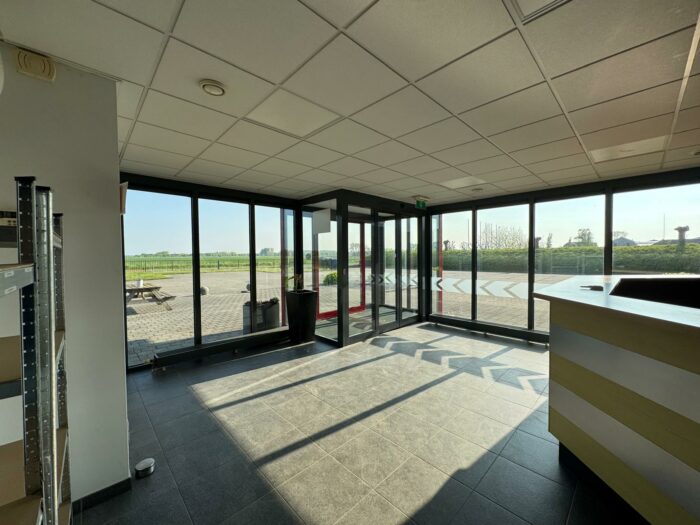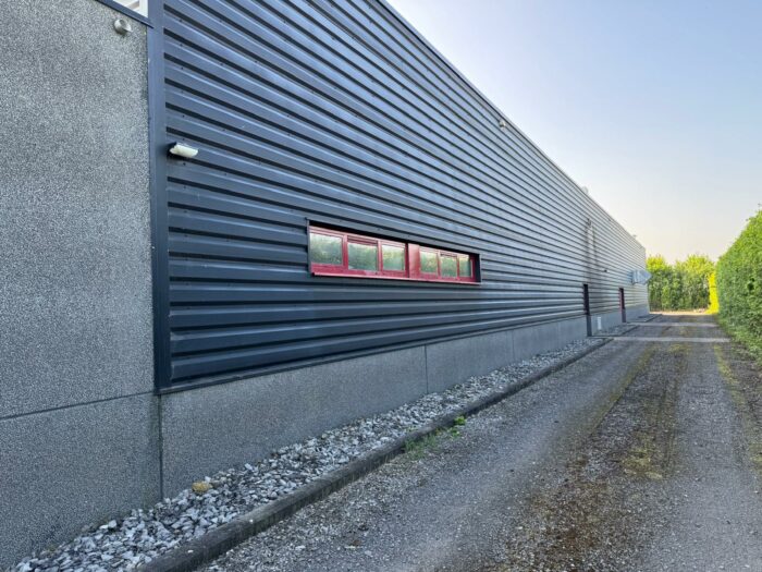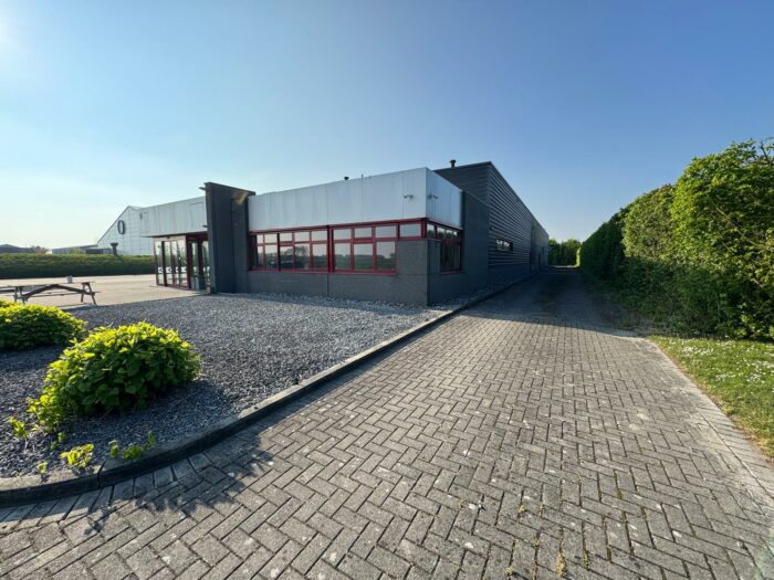 Moderne bedrijfsloods met vrije overspanning gelegen op een perceel van 6.570 m² met ruimschootse parkeergelegenheid rondom het gebouw.