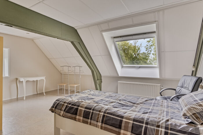 – 3de verdieping: 1 slaapkamer met badkamer, 1 slaapkamer, ruime bergzolder.