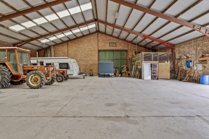 De loods is 20 meter breed en 35 meter lang. Het dak van deze loods is 10 jaar geleden geheel vernieuwd en op het dak zijn zonnepanelen geplaatst. De zonnepanelen zijn eigendom.