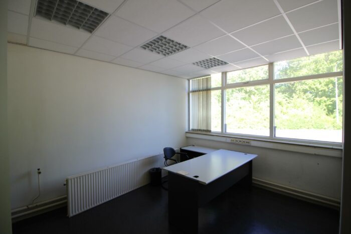 Kantoren: entreehal met ruime receptie, 12 individuele kantoorrruimtes, meerdere toiletgroepen, serverruimtes, voorraadruimte, archiefruimte meerdere ingangen.