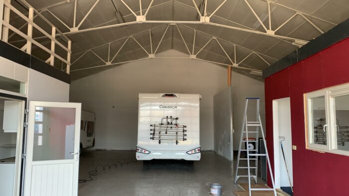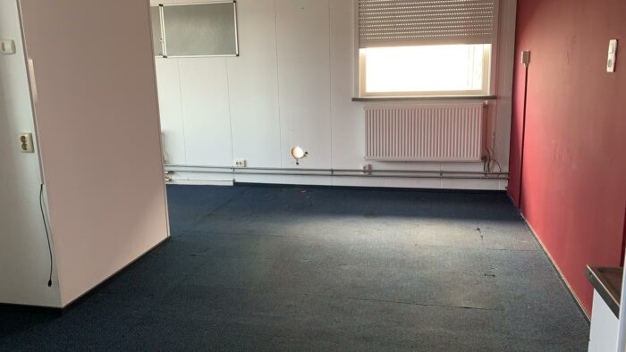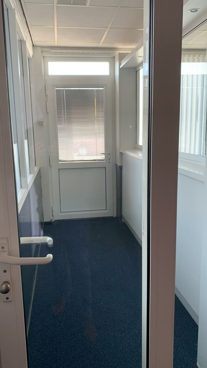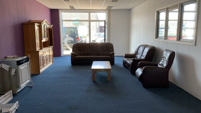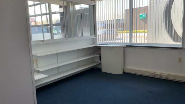 Indeling: inkom met balie-functie en kantoor, toilet, keukentje/ personeelsruimte, showroom, werkvloer met vrije overspanning.