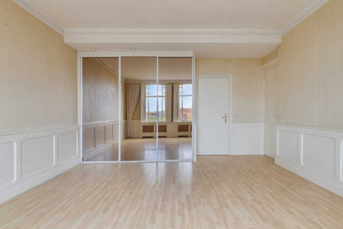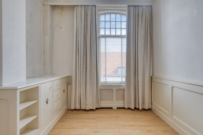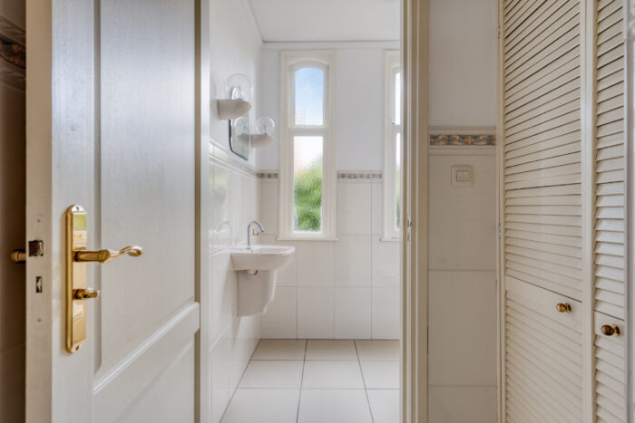 Op deze verdieping bevinden zich nog twee extra volwaardige slaapkamers, elk met eigen wastafel. De slaapkamer aan de voorzijde valt op door zijn authentieke raampartijen en bijzondere details.