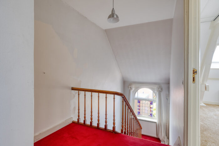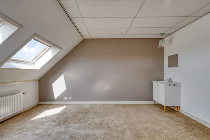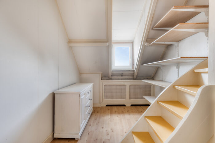 Via een vaste trap bereikt u de bergzolder, toegankelijk vanuit de werkkamer – ideaal als extra bergruimte of voor verdere uitbreiding.