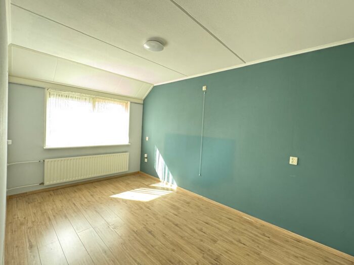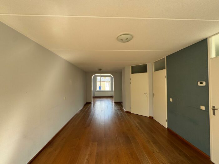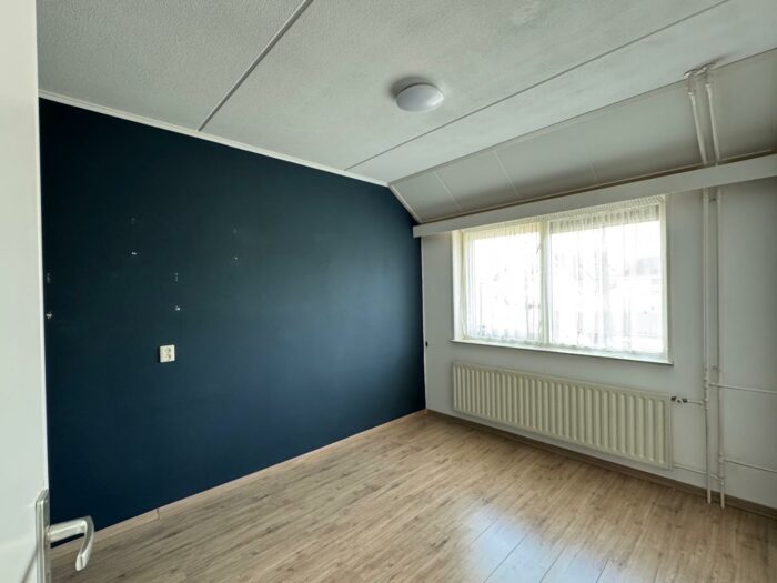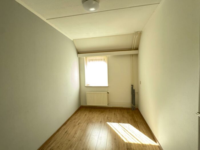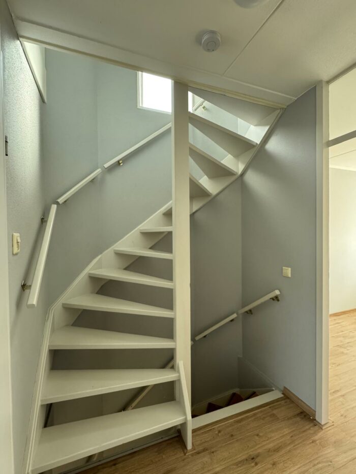 De woning is aan de achterzijde over de gehele breedte uitgebouwd, waardoor de woonkamer aanzienlijk groter is geworden en er een ruimte bijkeuken is gerealiseerd. Er zijn 4 slaapkamers, waarvan 1 op de 2de verdieping die bereikbaar is via een vaste trap. De woning is volledig geïsoleerd en heeft betonnen constructie vloeren, waardoor u weinig tot geen geluids doorgifte heeft naar de onderliggende woonlaag. Als de kinderen boven spelen heeft u in de woonkamer geen last van geluid. De achtertuin kunt u zowel via de achterzijde bereiken als via de zijkant naast de woning. De achtertuin grenst aan een smal straatje zodat u met de auto de achtertuin kunt bereiken. Indien u dit wenst kunt u een garage of carport realiseren in de achtertuin. Achter de woning ligt een groot speelveld met speeltoestellen voor kinderen.