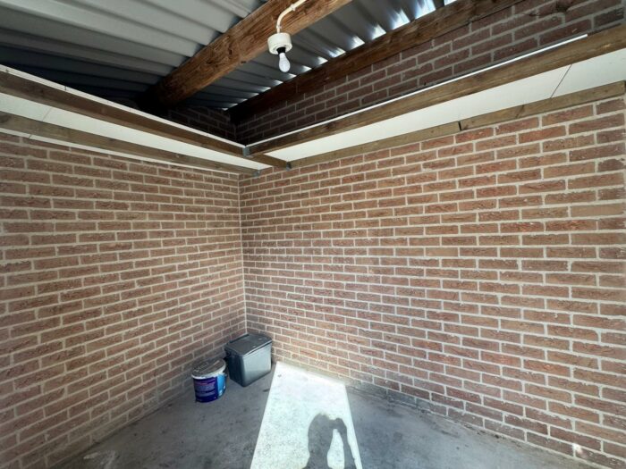 Mooie en goed onderhouden hoekwoning met aanbouw en fraaie onderhoudsvrije aangelegde tuin met vrijstaande stenen berging en buiten bar.