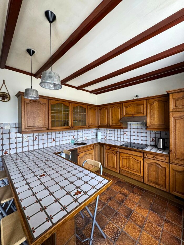 • Halfopen keuken met afzuigkap en keramische kookplaat