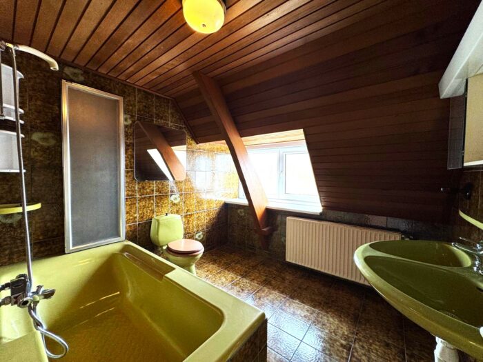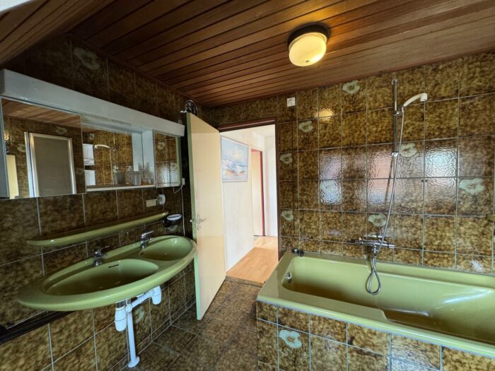 • Badkamer met ligbad, toilet en dubbele keramische wastafel