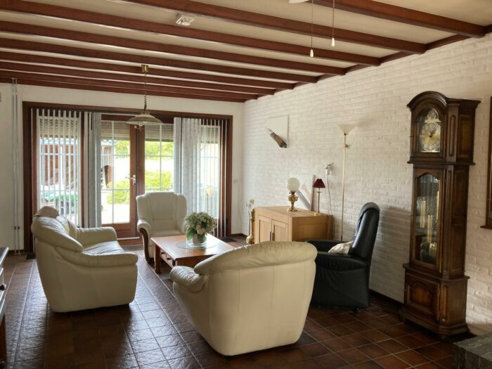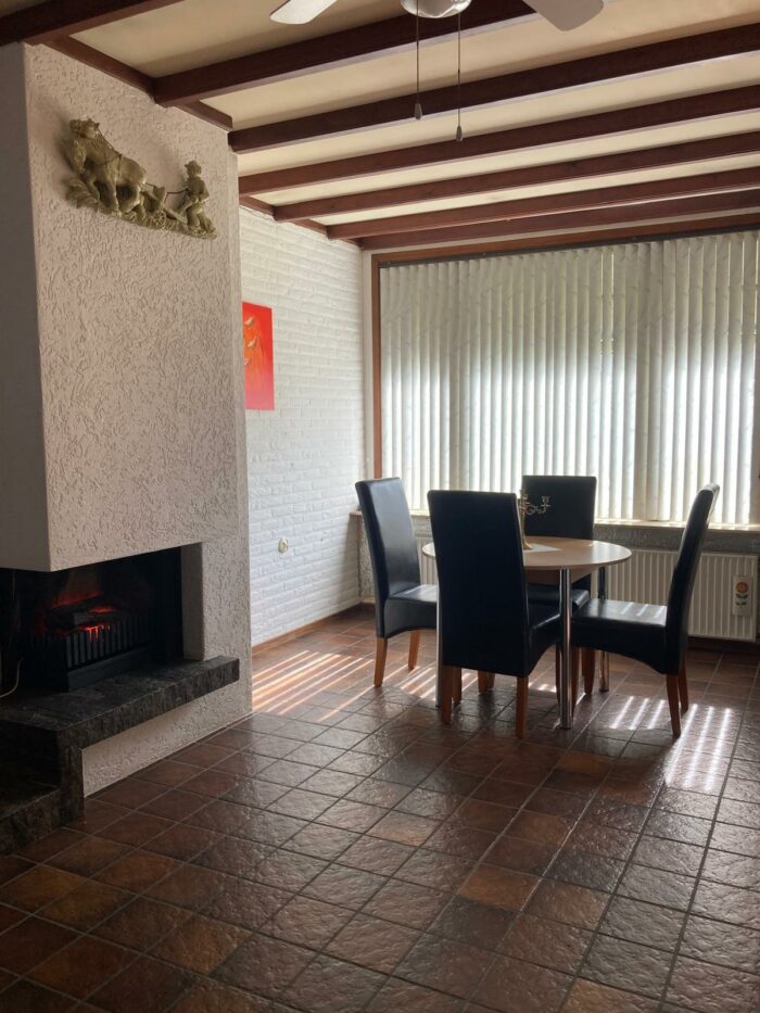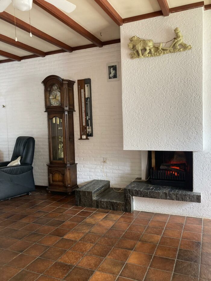 • Doorzonwoonkamer met open haard en openslaande tuindeuren