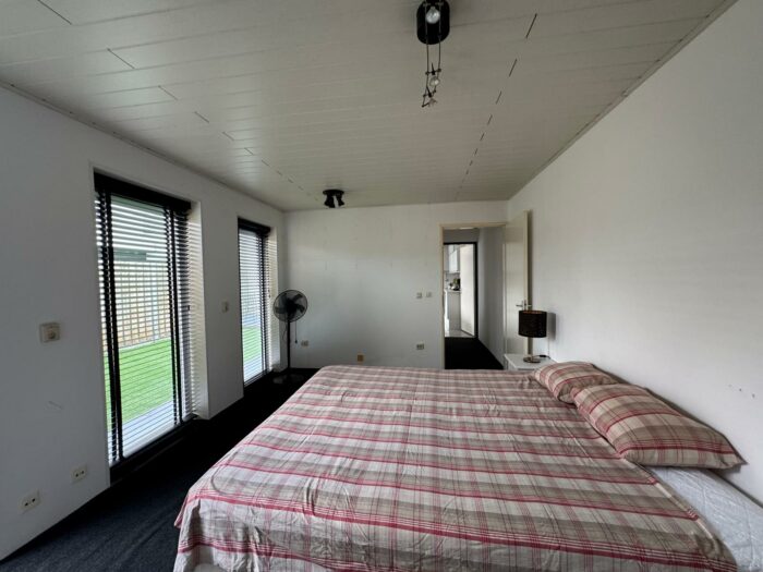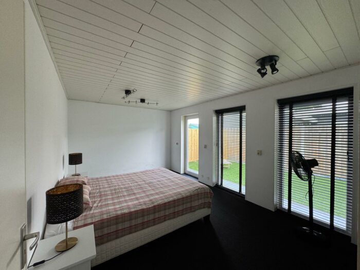 Heerlijk lichte en ruime slaapkamer c.q. kantoorruimte. Deze ruimte is voorzien van vloerverwarming en door de hoge ramen is dit een heerlijke lichte ruimte. Ook vanuit deze kamer is er een deur naar de tuin.