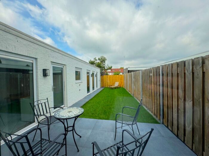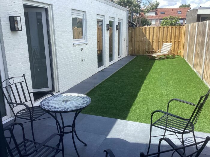De diepe, zonnige stadstuin op het westen is nagenoeg onderhoudsvrij en biedt volop privacy en rust. Geniet hier tot in de avond van de zon!