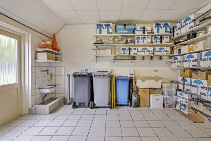 Bouwjaar 1992 en uitgebreid in 2001 met keuken, spoelkeuken, 2 ruime magazijnen, bergzolder en toiletten.