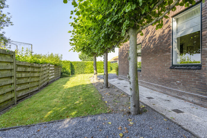 Met walnotenbomen, perenboom en appelbomen. In deze boomgaard bevinden zich nog de fundamenten van een afgebroken wagenhuis uit 1756.