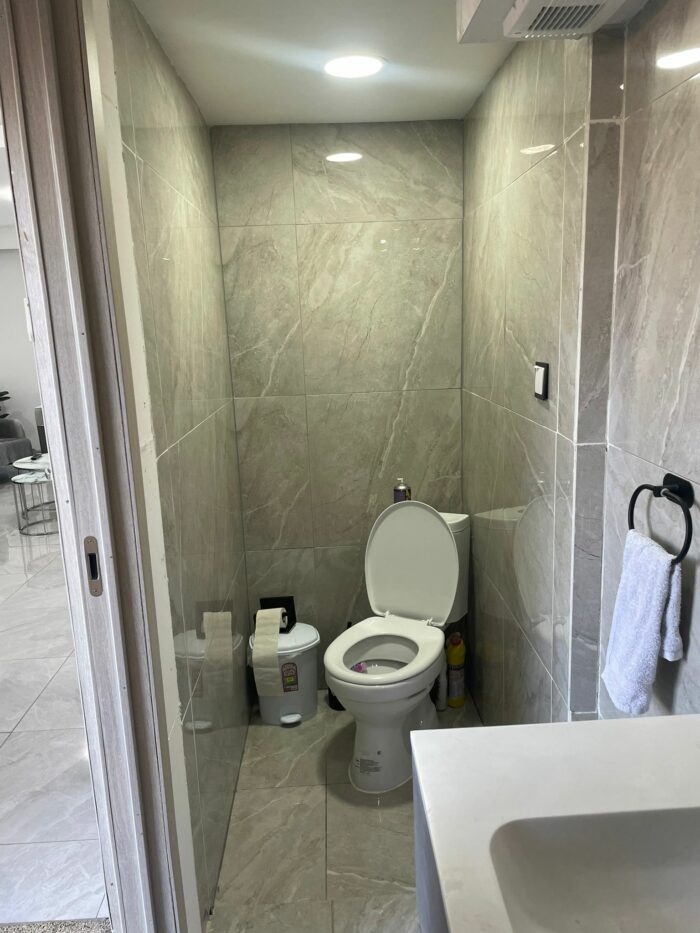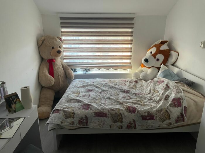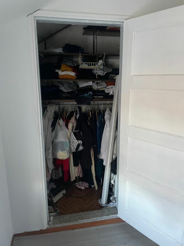 1ste verdieping: overloop, 2 slaapkamers, badkamer met wastafel, douche, toilet en aansluiting wasmachine.