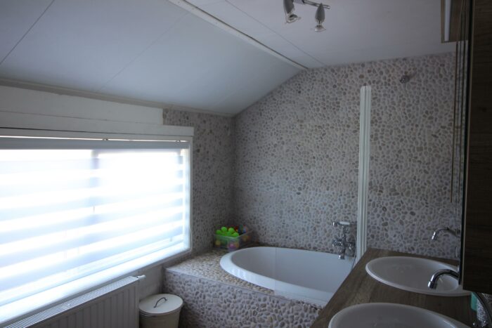 Overloop, 2 slaapkamer, badkamer met ligbad/douche en dubbele wastafel.