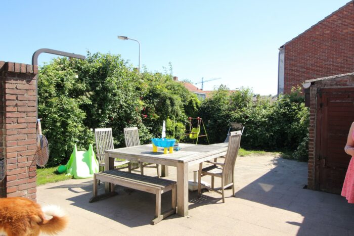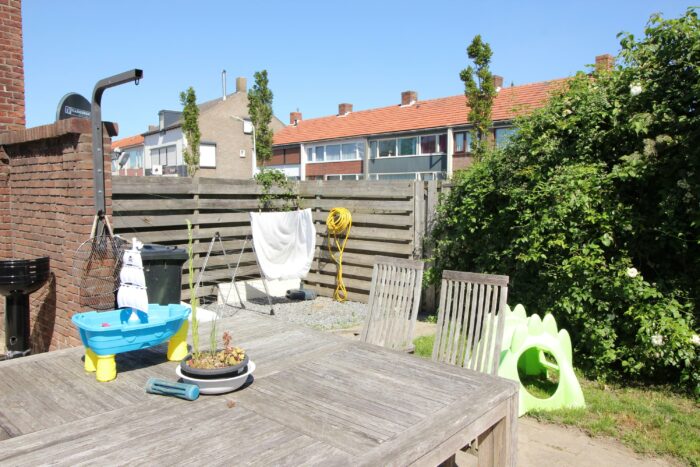 Tuin: Op het zuiden gelegen zeer ruime achtertuin met zijtuin, gazon en schutting met zijpoort.