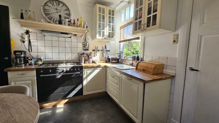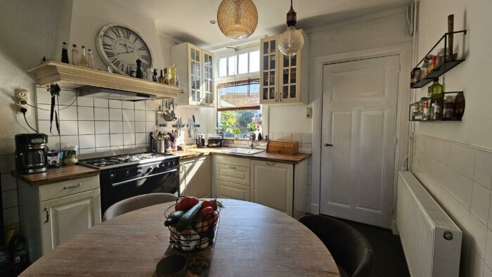 Deze prachtige woning zit nog vol met authentieke elementen. Glas in lood en en suite deuren. Iedere kamer heeft ingebouwde kasten.