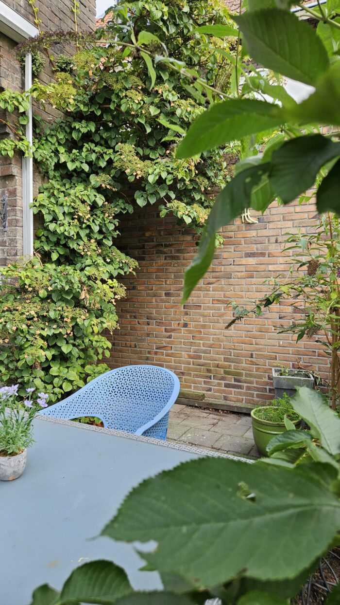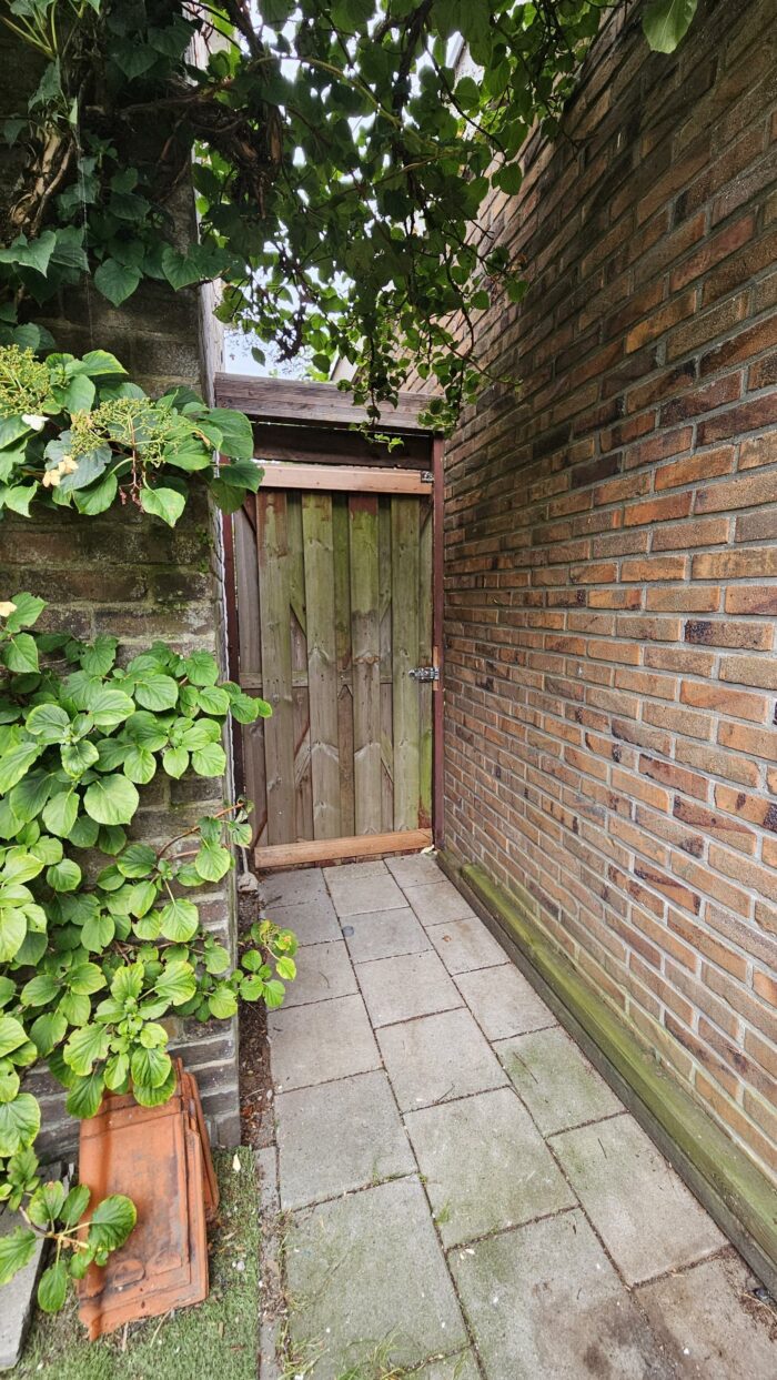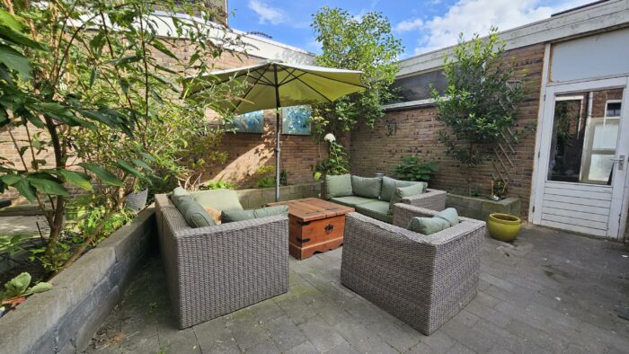 Vanuit de woonkamer heb je, via grote openslaande tuindeuren, toegang tot de gezellige tuin op het zuidwesten. Met enorm veel privacy en zon kan je hier heerlijk buiten zitten. Ook via de bijkeuken heb je toegang tot de tuin.