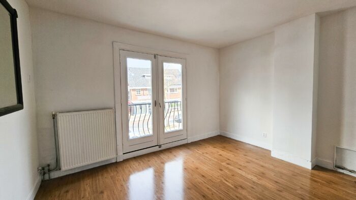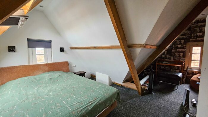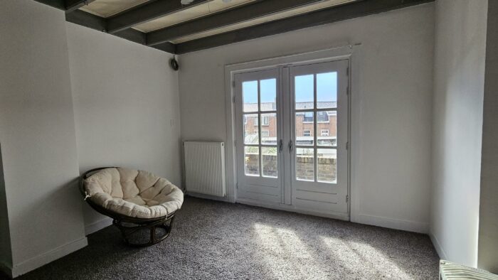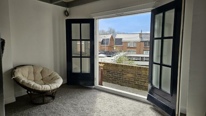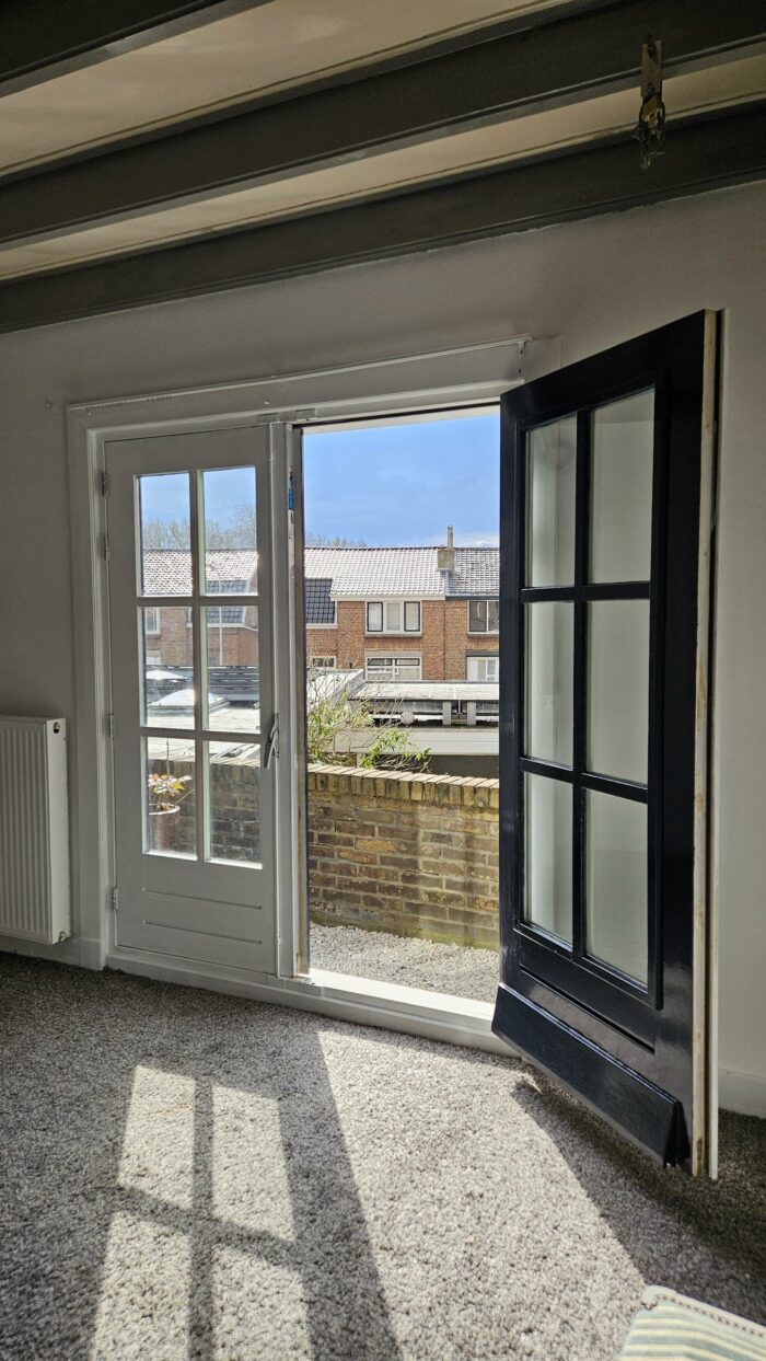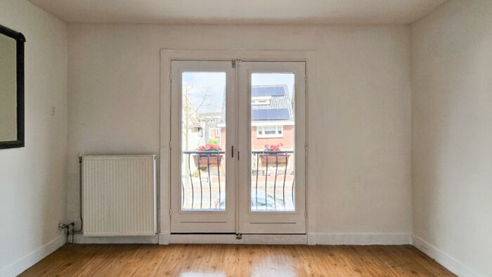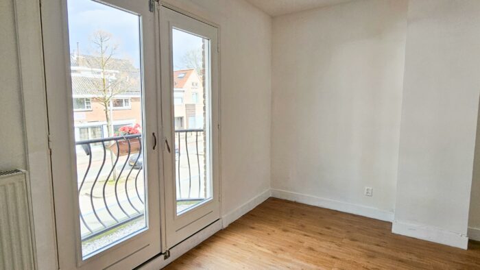 De grote slaapkamer aan de voorzijde is ook voorzien van openslaande balkondeuren.