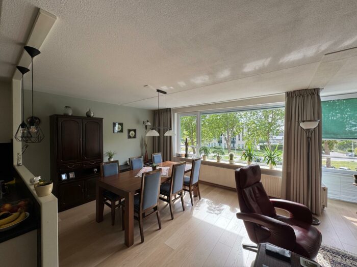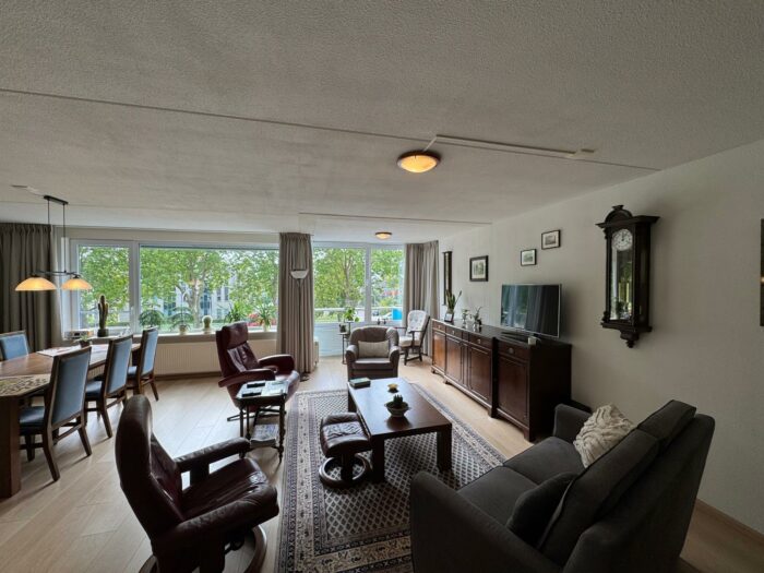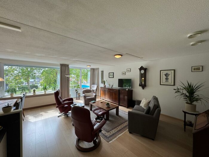 Royale woonkamer (circa 47 m²) met groot raampartij wat een panoramisch uitzicht geeft op uw woonomgeving en veel lichtinval de gehele dag.