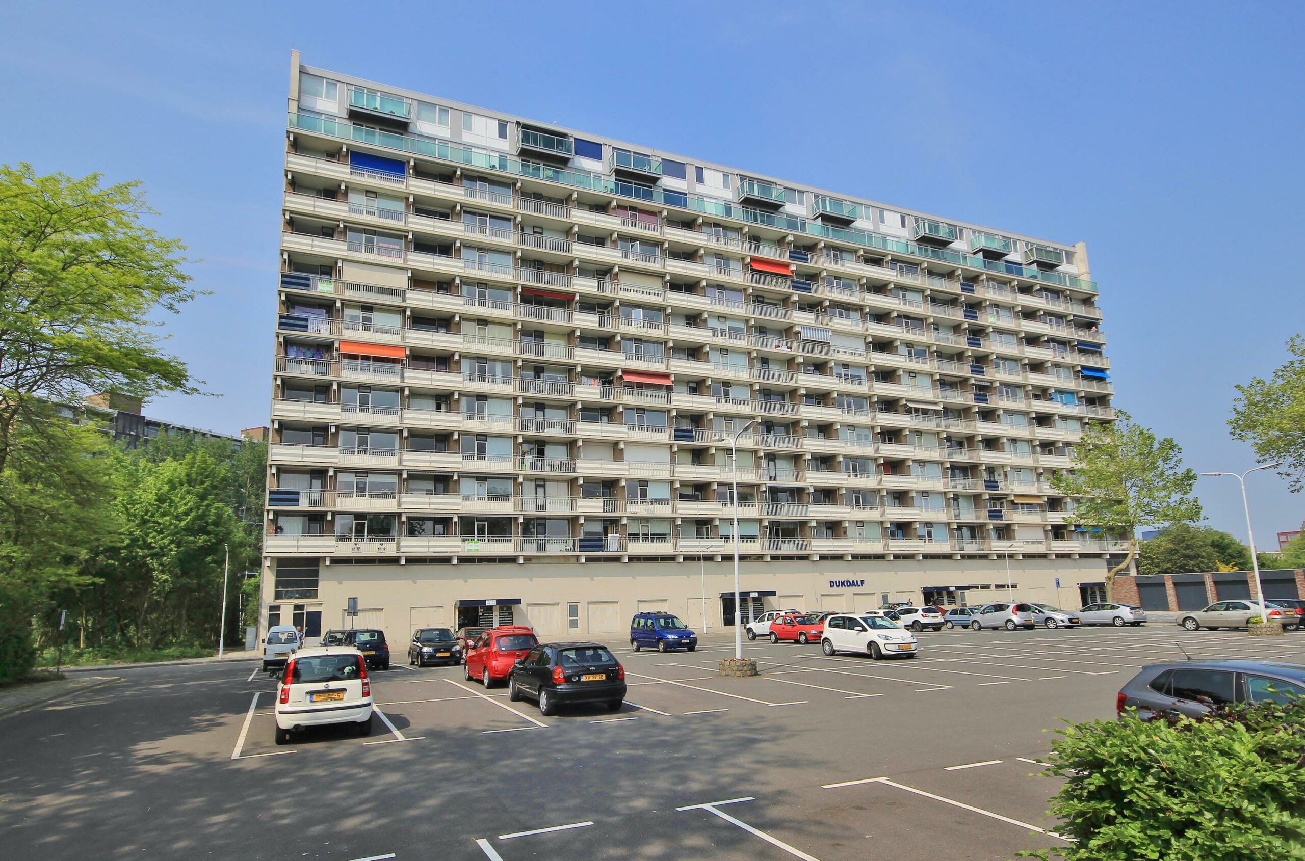Leuk 2-kamer appartement met balkon en berging, gelegen op de 5e verdieping van het appartementencomplex Dukdalf. Dit appartement is voorzien van 1 slaapkamer en heeft een balkon aan de zuidzijde. Bouwjaar 1973, inhoud 145m³ en 48 m² woonoppervlak.