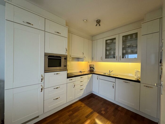 • Aangrenzende bijkeuken met aansluitingen voor wasapparatuur, de c.v.-ketel en de unit voor balansventilatie. Extra opbergruimte voor proviand.
