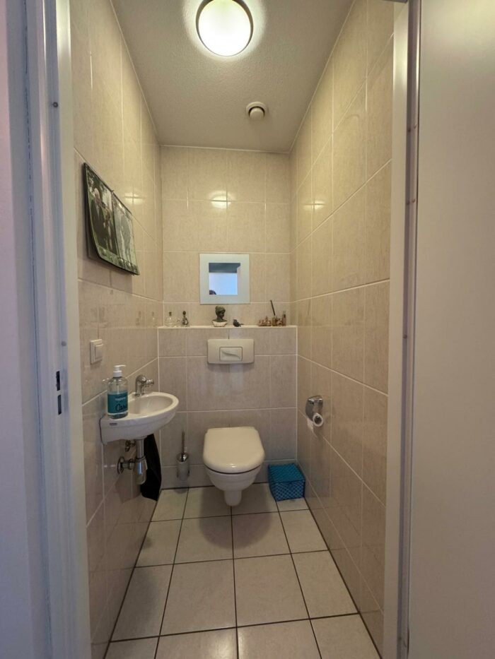 In de L-vormige hal treft u eigen meterkast en een keurig afgewerkte toiletruimte met hangtoilet en fonteintje.