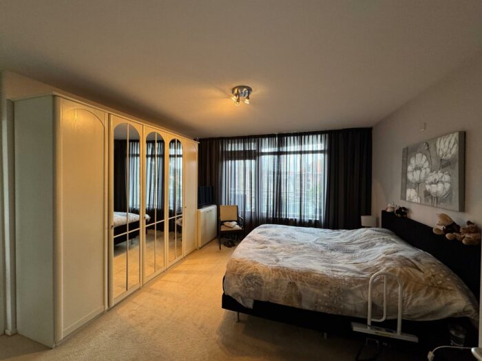 • Masterbedroom (ca. 19,3 m²) met ingebouwde kledingkast, royale badkamer en toegang tot het balkon.