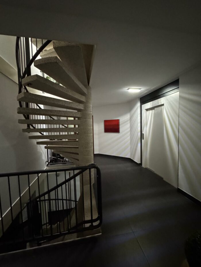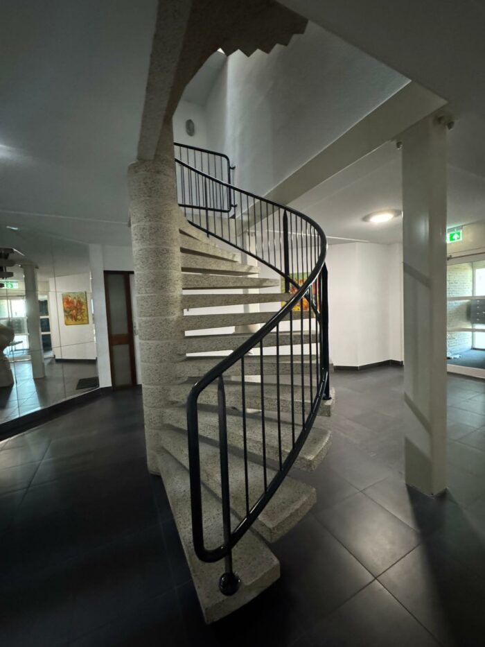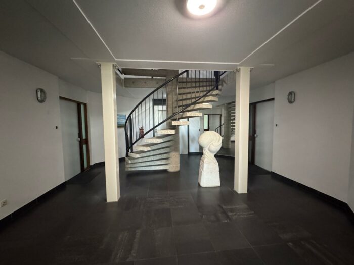 Zodra u hier binnenkomt voelt u zich thuis. Deze aangename entree is uitgerust met een elektrische toegangsdeur en videofoon. De stijlvolle gemeenschappelijke hal is voorzien van een bijzondere betonnen trap en biedt toegang tot de lift.
