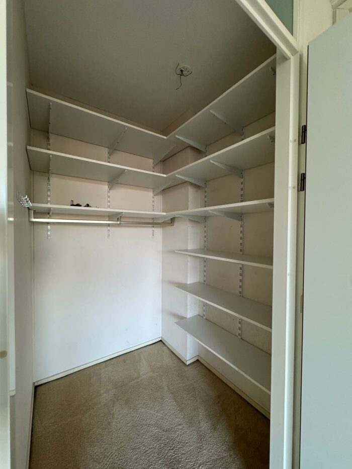 • Slaapkamer 2 (ca. 10 m²) met toegang tot het balkon en aansluitingen voor een doucheruimte (momenteel in gebruik als berging).