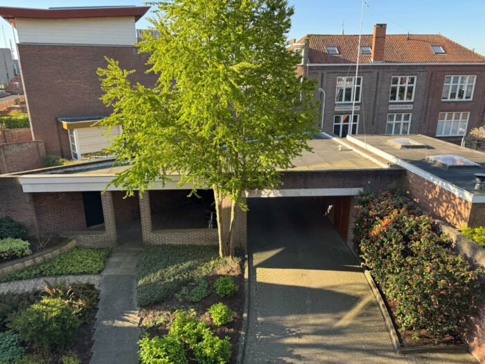 U heeft ook toegang tot de trappenhal en parkeerkelder via de tuin aan de achterzijde.